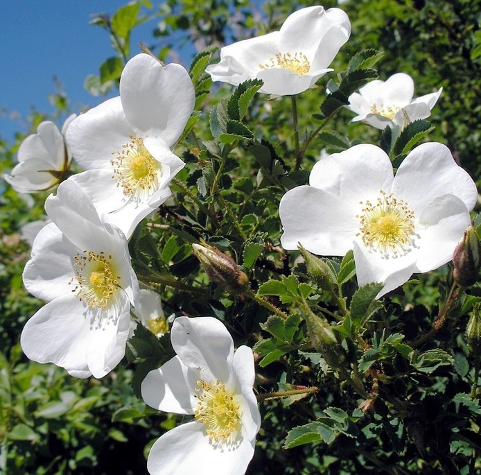 Wenn die Heckenrosen blühten, sah das für die alten Mönchzeller von weitem so aus, als hätte jemand weiße Windeln an der Hecke zum Trocknen aufgehängt. Und weil die Rosen außerdem so süß dufteten, erzählten sie sich, dass die Mutter Gottes mal wieder die Windeln vom Jesuskind zum Trocknen aufgehängt hätte. Denn alles was vom Jesuskind kam, war natürlich süß und rein, auch die gewaschenen Windeln. Deshalb nannten die alten Mönchzeller die Heckenrose Muttgergottesgschmaggit. Ich finde die Geschichte herrlich. Die hatten auch Fantasie und Ideen, unsere Vorfahren!