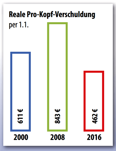 Dann präsentierte der inzwischen abgewählte Moos eine fantastische niedrige Pro-Kopf-Verschuldung von nur 462 Euro.