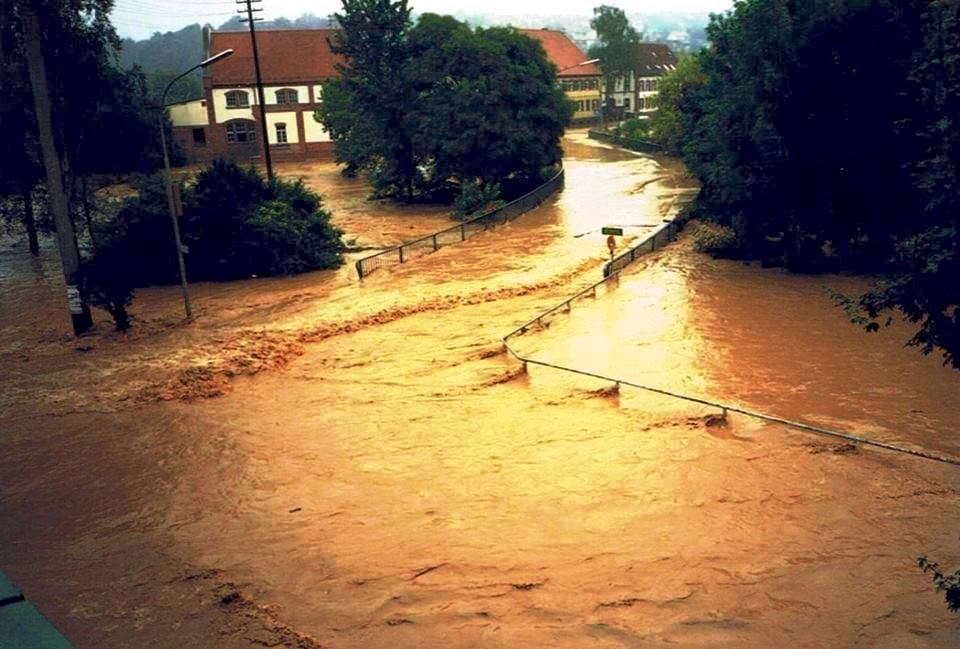 Arno Beckmanns Film „Die große Flut 1994“ ist ein Zeitdokument, das dieses Ereignis filmisch und in Bildern festhält. Das schlammdunkle Wasser rauschte durch die Meckesheimer Straßen, drang mit unwiderstehlicher Gewalt in die Häuser und Keller, ließ Autos schwimmen, zerstörte Inventar in Wohnungen und öffentlichen Hallen und Gebäuden. .